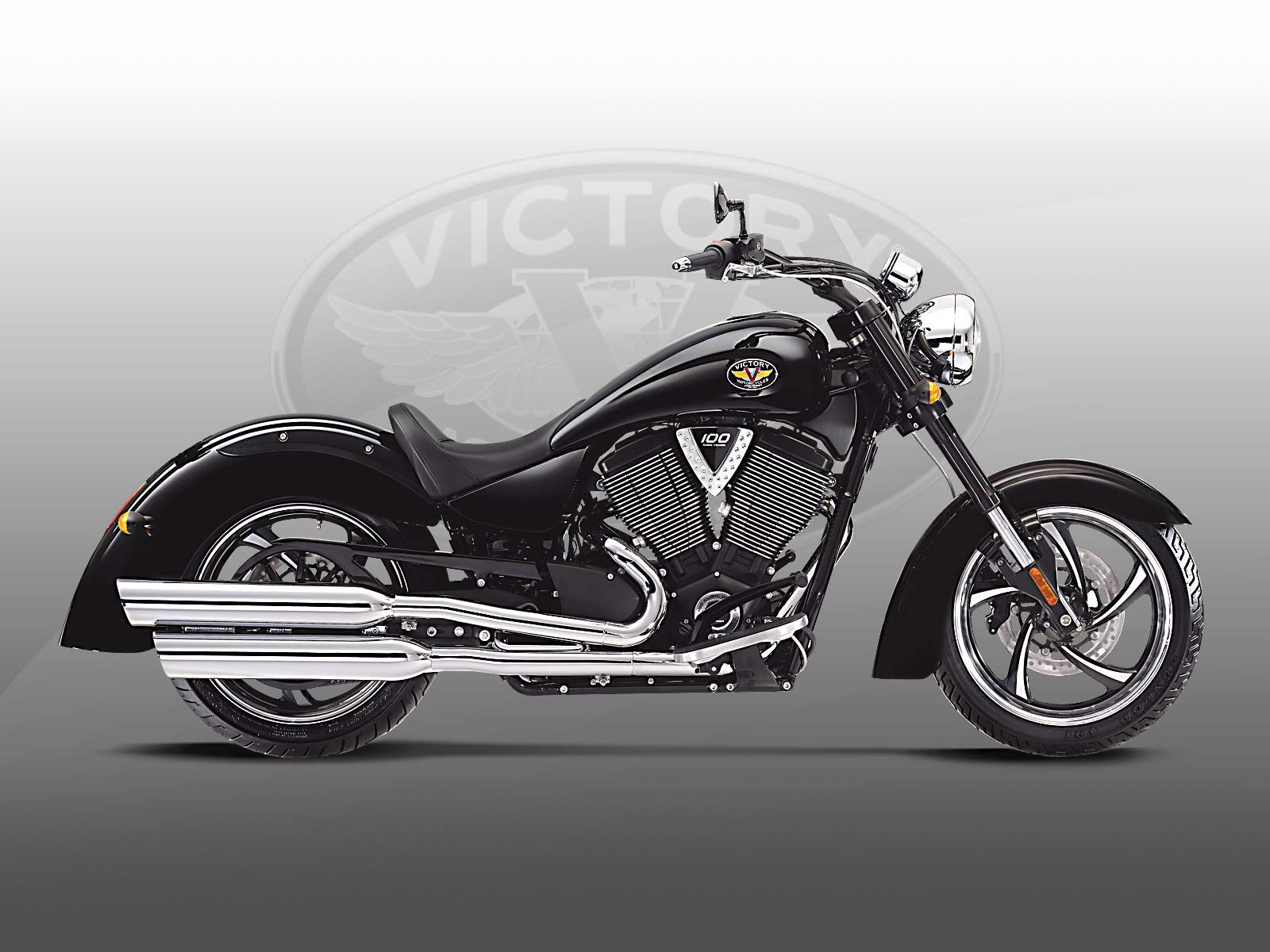 A no-frills cruiser motorcycle for those who like their performance served raw. Its style and performance can't be matched, and its value can't be denied. The 2010 Victory Kingpin 8-Ball Motorcycle prefers to roll up high mileage without all the bells and whistles. Its 100-cubic-inch Freedom V-Twin Engine and blacked-out bars and wheels result in a no-nonsense style that says, “Give me fuel and the open road and I’m good.”